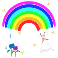 かわいいてるてる坊主と虹のイラスト