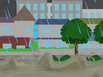 氾濫する川のイラスト
