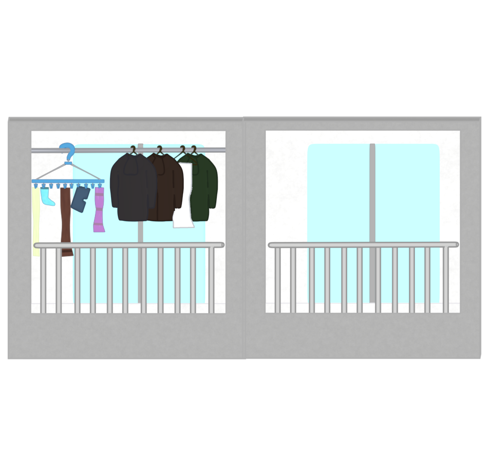 スポンサーリンク スポンサーリンク ベランダで洗濯物を干すイラスト 暮らし 2025.10.08 マンション・アパートのベランダに干されている洗濯物です。風通しのよい場所で乾かす洋服のイメージに使いやすい素材だと思います。