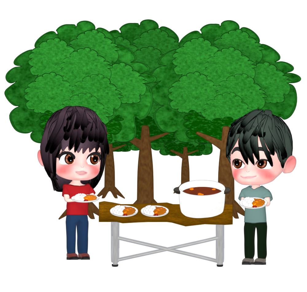 アウトドアで料理を作り、開放感のある自然の中で美味しいカレーを食べる人たちのイメージに使いやすい素材だと思います。