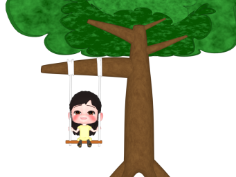 木のブランコに乗る子供のイラスト