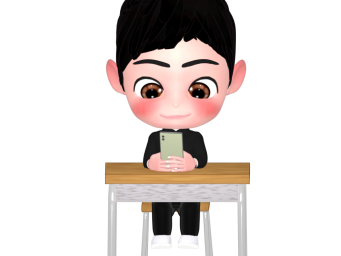 学校の机でスマホを触る男子生徒のイラスト