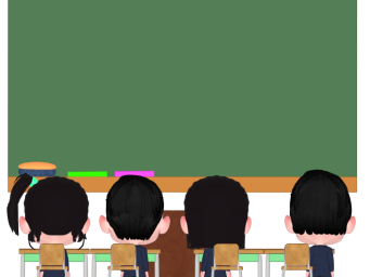 後ろから見る起立をする子供たちのイラスト