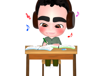 ヘッドホンで音楽を聴きながら勉強をする男の子のイラスト