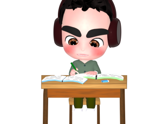 ヘッドホンをつけて勉強をする男の子のイラスト