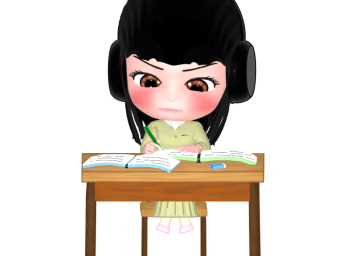 ヘッドホンをつけて猛勉強をする女の子のイラスト