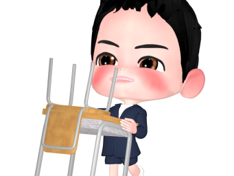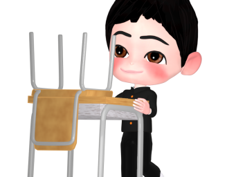 椅子を机にのせるイラスト