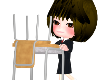 机を運ぶ女子生徒のイラスト