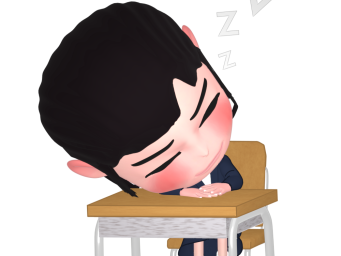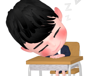 机に伏せて寝る女の子のイラスト