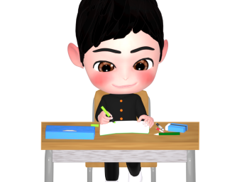 机で勉強をする学生のイラスト