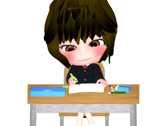 机で勉強をする女子生徒のイラスト