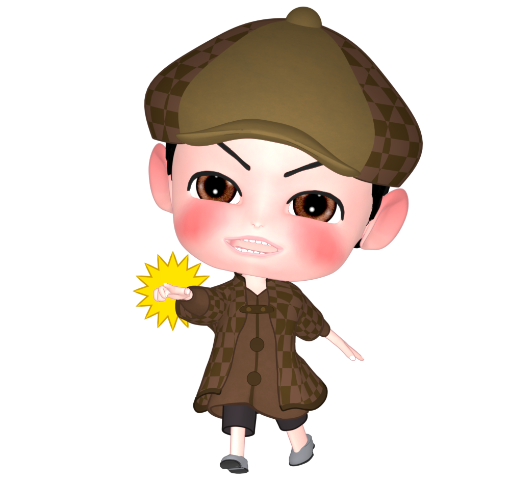 スポンサーリンク スポンサーリンク こども探偵のイラスト 人物 2025.10.03 「はんにんはあなただ!」ドヤ顔で指をさしている、探偵の格好をした男の子です。 見た目は子ども、頭脳は大人並みにある「こども探偵」のイメージなどに使いやすい素材だと思います。