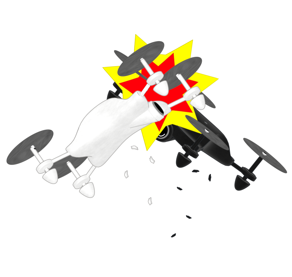 操縦ミスで飛行中に衝突事故を起こしているドローンのイメージなどに使いやすい素材だと思います。