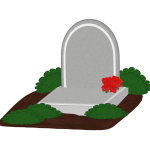 土の上に十字架が刺さっている、土葬したお墓の白黒シルエット素材です。