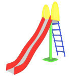 斜め前から見る、公園のかわいいすべり台の白黒シルエット素材です。