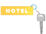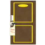 宿泊者とホテル側でのサインを交わすための道具、ドアノブプレートの白黒シルエット素材です。