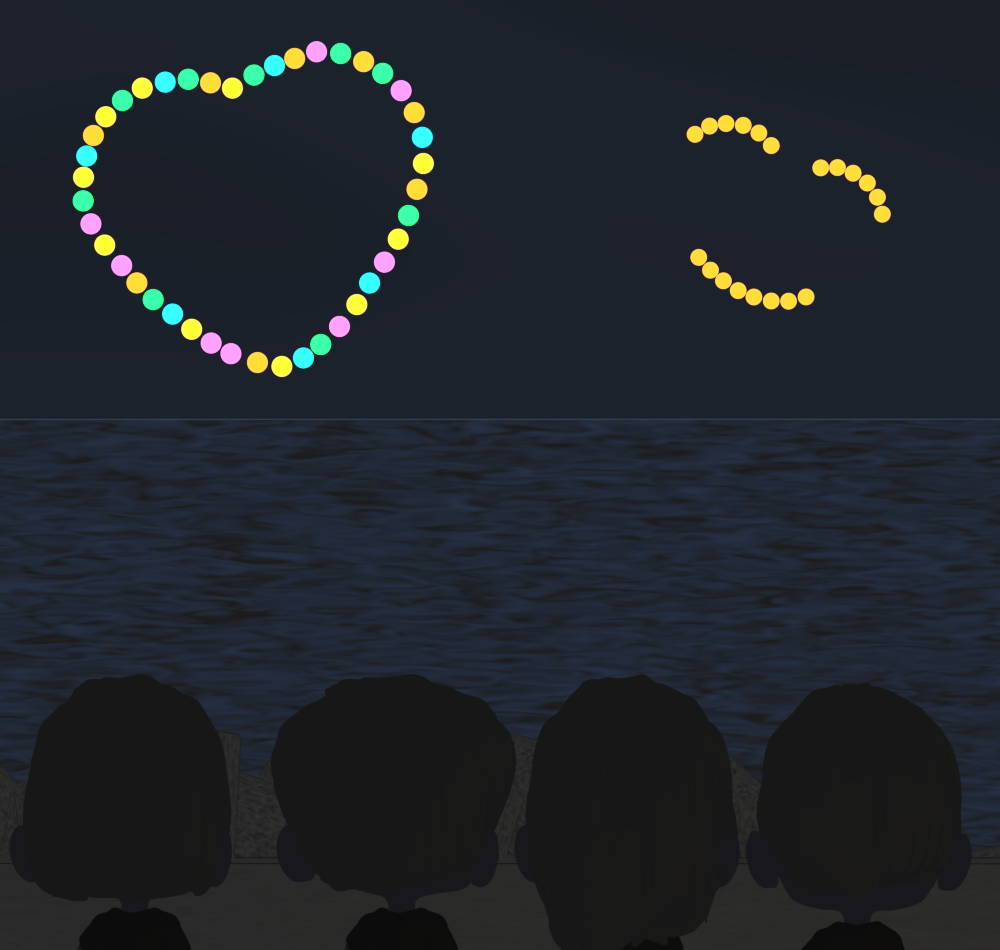 スポンサーリンク スポンサーリンク ドローンのイルミネーションのイラスト イルミネーション 2025.12.10 暗闇に浮かぶ、美しいドローンのイルミネーションです。 観覧者の前で、「ハートマーク」・「ニッコリマーク」が夜の空に浮かび上がっています。ドローンショーのイメージなどに使いやすい素材だと思います。