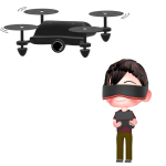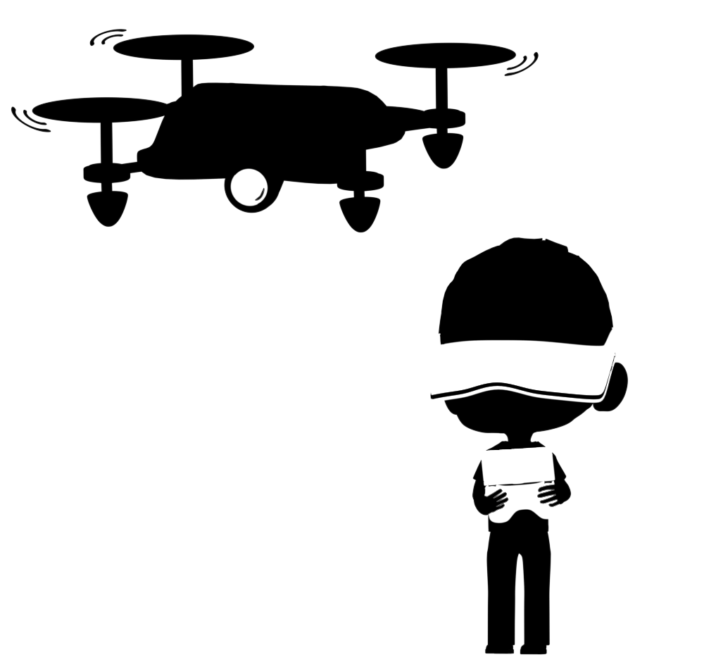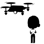 ドローンから発信される映像を、リアルタイムで観ながら操縦をする人の白黒シルエット素材です。