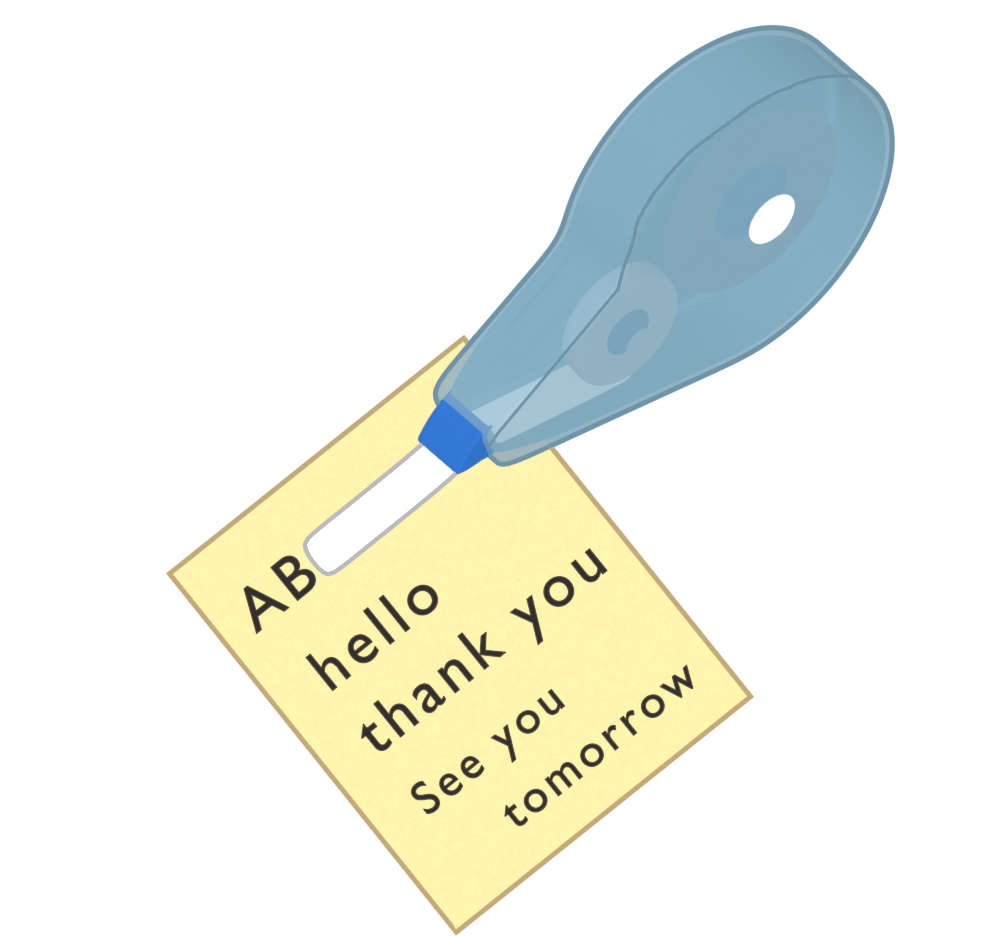 スポンサーリンク スポンサーリンク テープのりのイラスト 学校 2025.10.10 文字の横にメモを貼り付けるために、テープのりで塗っている様子です。 修正テープのように簡単に使える、便利なテープのりになります。「文字を消す修正テープ」としても使いやすい素材だと思います。