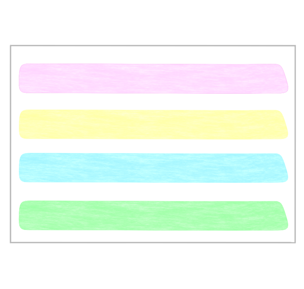 スポンサーリンク スポンサーリンク 蛍光ペンのラインのイラスト 学校 2025.10.14 カラフルで優しい色をした、蛍光ペンで塗った複数のラインです。 「ピンク色・黄色・水色・緑色」の、蛍光マーカーペン独特な薄くて優しい発色をしたライン線の素材になります。
