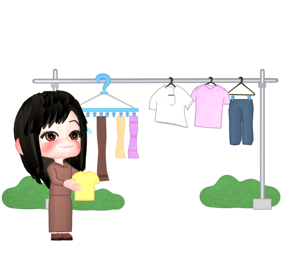 スポンサーリンク スポンサーリンク 洗濯物を干す女性のイラスト 人物 2025.10.08 家の庭で洗濯物を干している女の人です。 戸建て・一軒家で晴れた日に、屋外の風通しの良い場所で気持ちよく服を乾かしている、家事をする人のイメージなどに使いやすい素材だと思います。
