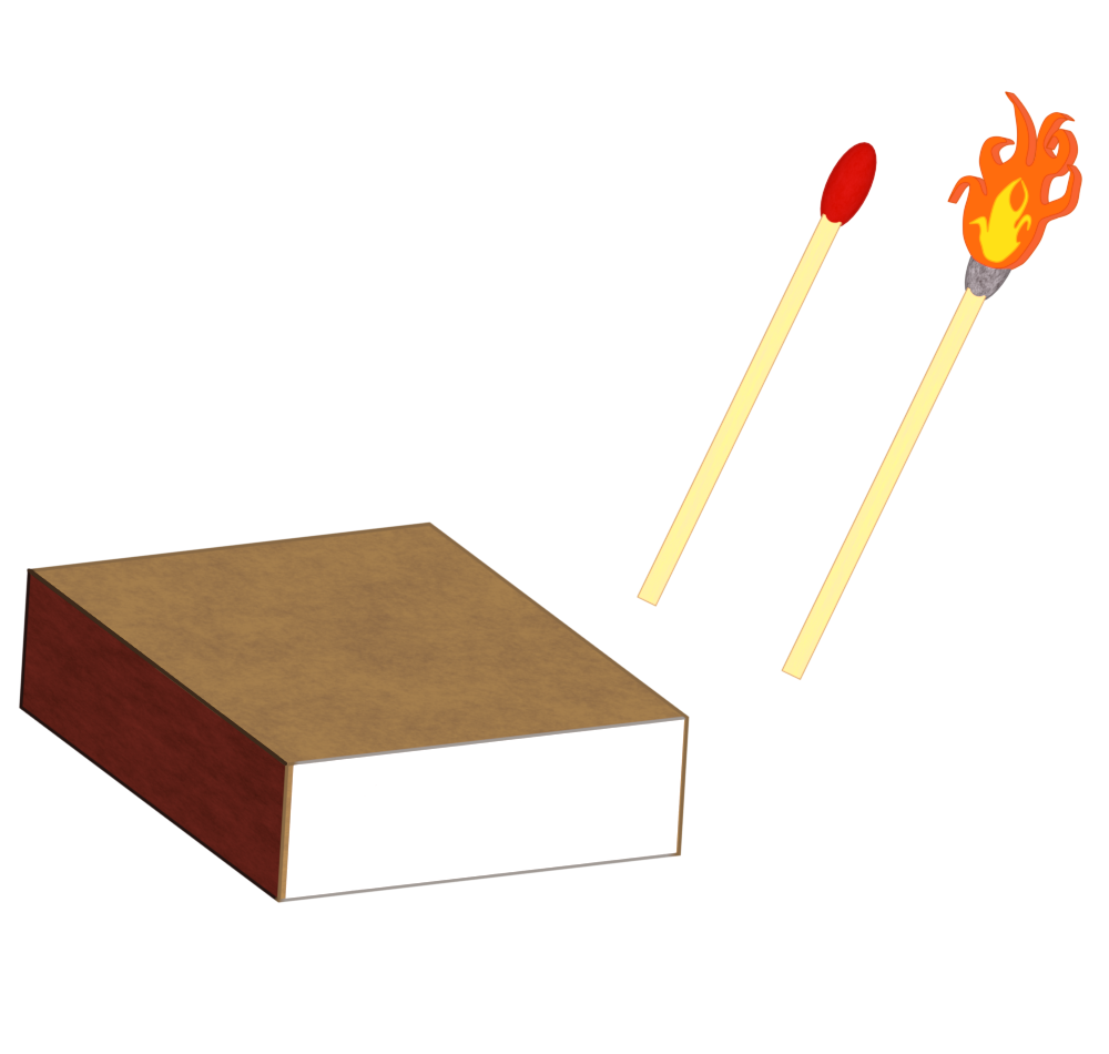細く短い軸の先端に、発火性のある混合物をつけた木。そして箱に側薬を塗付した側面と摩擦を発生させることで発火させます。