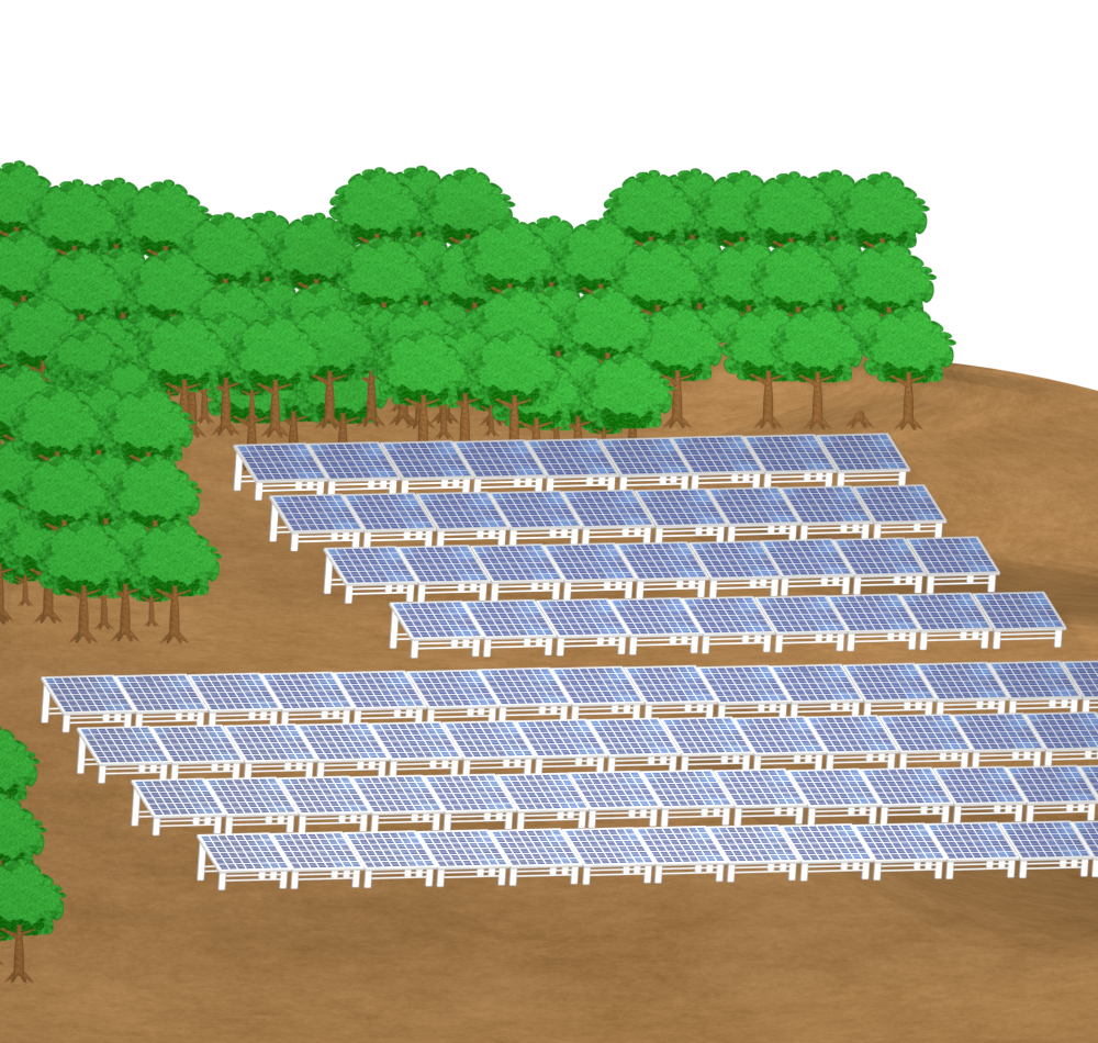 スポンサーリンク スポンサーリンク メガソーラーのイラスト ビジネス 2025.12.11 約1MWを超える出力を持つ、太陽光発電設備のメガソーラーです。 太陽光を効率的に、そして一度に大きなエネルギーを集めることができるメリットがあります。その一方で、広い敷地を必要とするため、大規模な森林伐採や野生動物への影響、工事を伴う自然環境への影響が懸念されています。