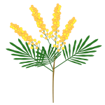 風にふわふわとなびく黄色の小さな花が特徴的な、ミモザの白黒シルエット素材です。