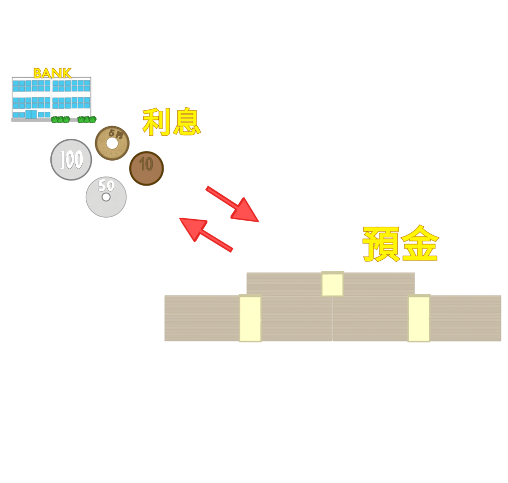 スポンサーリンク スポンサーリンク 多くの預金と少ない利息のイラスト お金 2025.10.04 銀行にたくさんの預金をするものの、利息が少ない構図です。 銀行は預金者から資金を預かります。そのお金を運用して得た利益の一部を、預金者に利息として還元する形で支払われます。