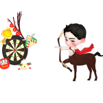 太陽が上がる富士山を背景に、下半身は馬で上半身は人間の姿をしているケンタウロスがいます。午年の新年を迎えた、年賀状の素材などに使いやすいと思います。