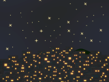 山の奥に見える、美しい夜景です。建物の明かりと、月夜に光る星の数々が輝くイメージなどに使いやすい素材だと思います。