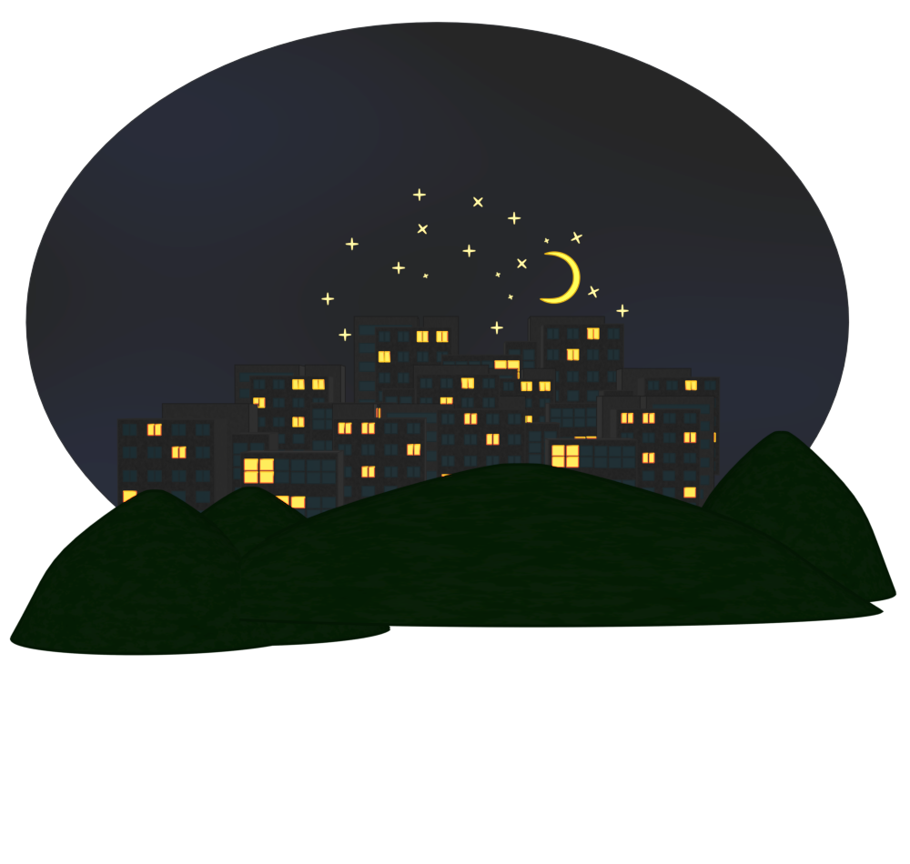 山と夜景のイラスト