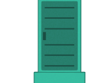 ノブがついている、シンプルな開いたドアの白黒シルエット素材です。