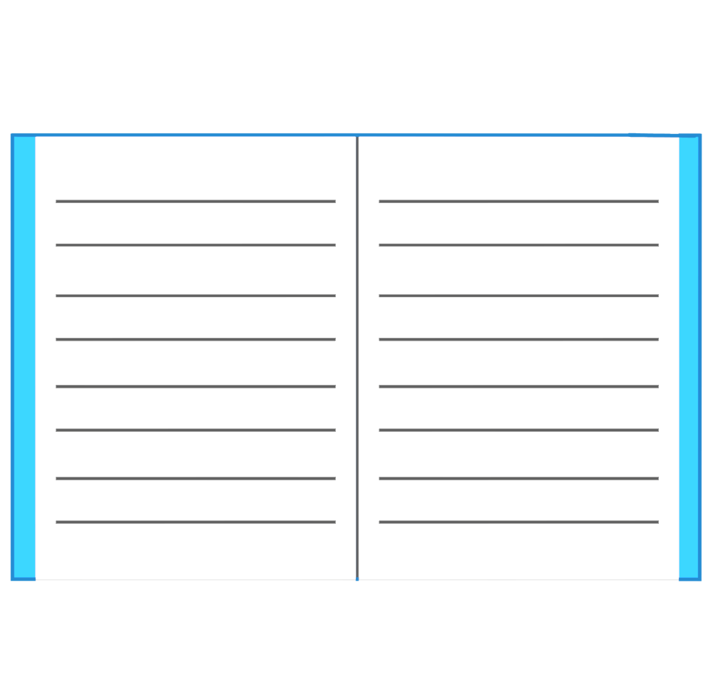 見開いている、シンプルなノートです。下線が引いているので、大事なことなどの文字を書きやすい素材だと思います。