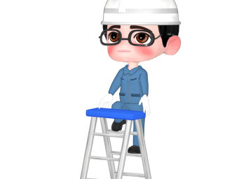 脚立に登る作業員のイラスト