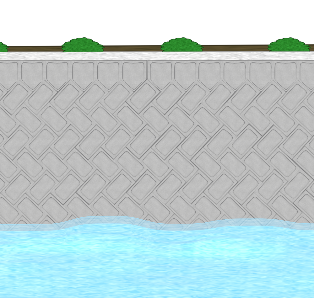 スポンサーリンク スポンサーリンク 河川の護岸ブロックのイラスト 季節・年中行事 2025.10.22 川の奥にある、護岸ブロックの壁です。 「護岸ブロック」とは、川の流れによる岸辺の浸食や崩壊を防ぐ役割があり、堤防を強化することで、大雨時には河川の氾濫や浸水の被害リスクを減少させる目的でつくられています。