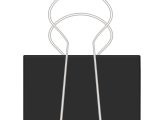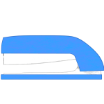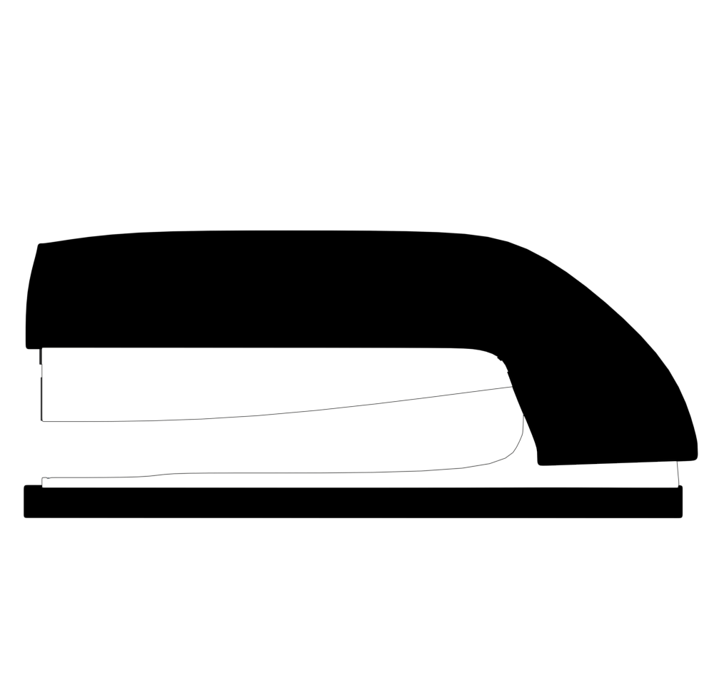 真横から見る、束ねた紙をまとめるときに用いるホッチキス(ホチキス)の白黒シルエット素材です。