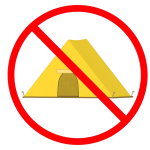 テントを張ることを禁止にしている、アイコンの白黒シルエット素材です。