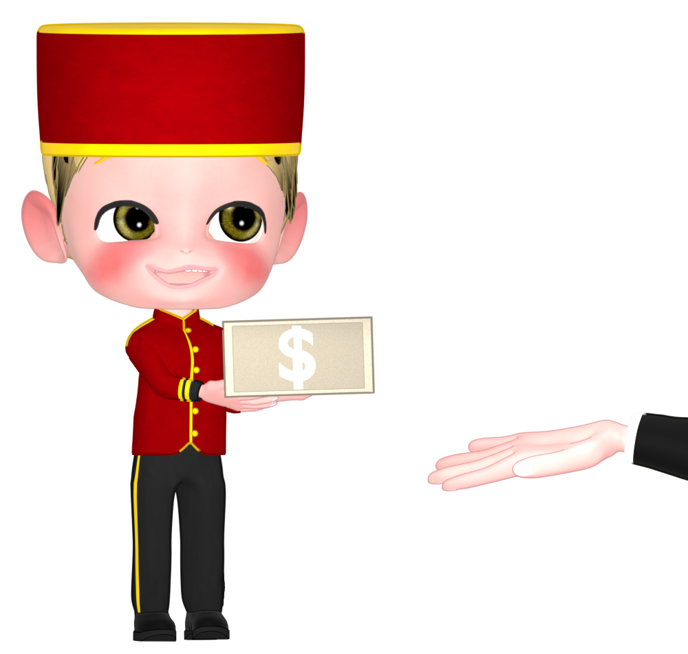 スポンサーリンク スポンサーリンク チップを貰うホテルマンのイラスト 季節・年中行事 2025.10.05 サービスを受けたことに対して、チップを貰っているホテルマンです。 「チップ」とはホテルなどにおいて、通常の商品やサービス以外の従業員によるサービスに対して、任意で支払われる金銭を言います。