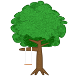枝にロープをかけてブランコを設置している、大きな木の白黒シルエット素材です。