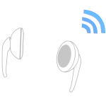 本機から電波を飛ばしながら無線で音を聴く、ワイヤレスイヤホンの白黒シルエット素材です。